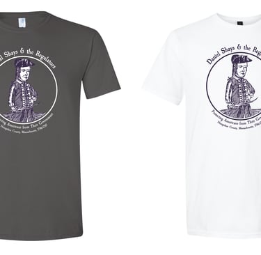 Charcoal and white, unisex sizes, M to XXL. $25 for the shirts, plus $6 shipping.